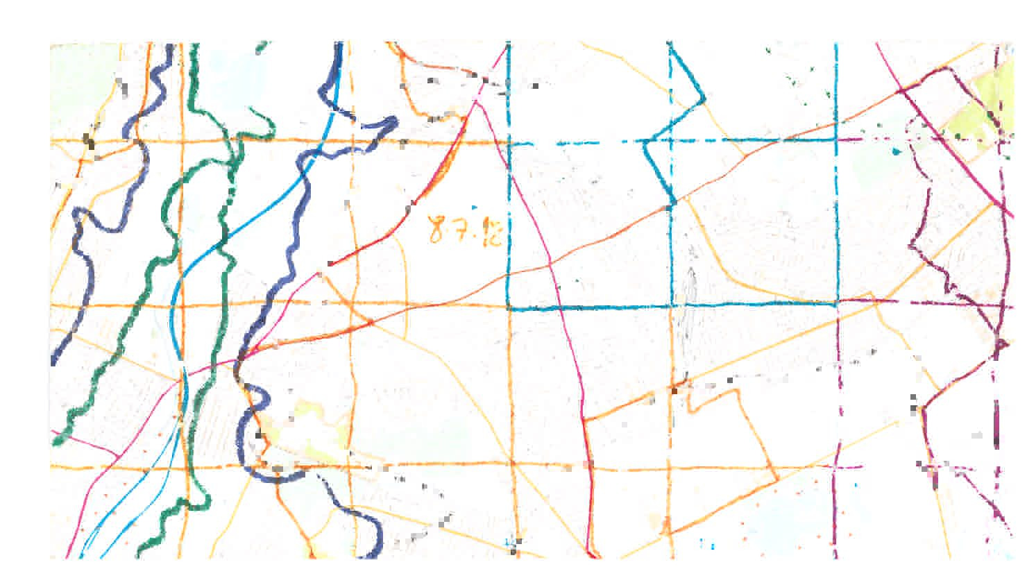 Back home after each trip I would trace my route across sheet 174 in coloured pen. My wavering lines gradually obscured the map's neat blue squares, replacing the standardized symbols of the Ordnance Survey with a more amorphous knowledge. And over the months the map began to fall apart: tears spreading along the folds, defining a new grid, preparing for a final disintegration along new and unremarked lines.